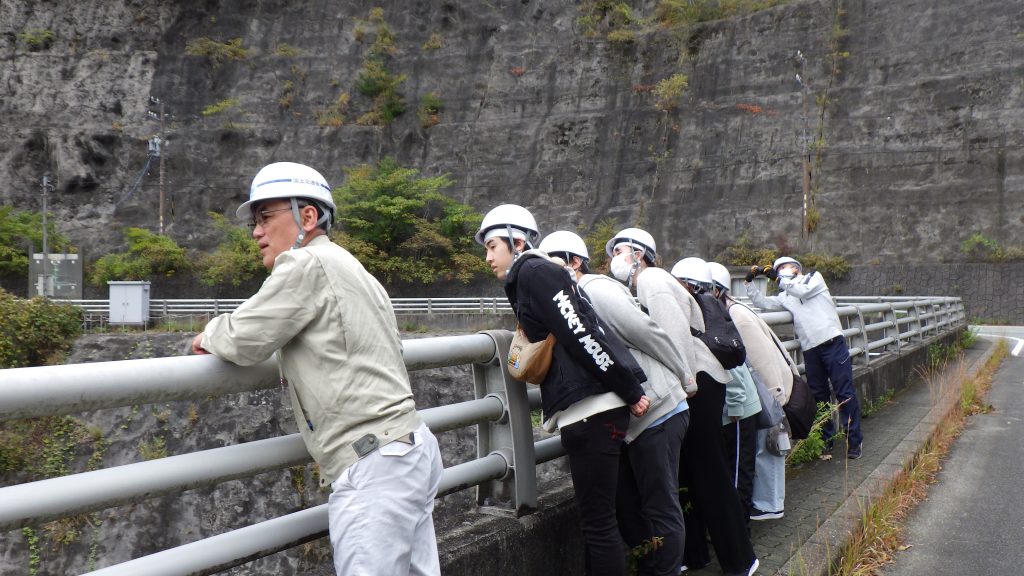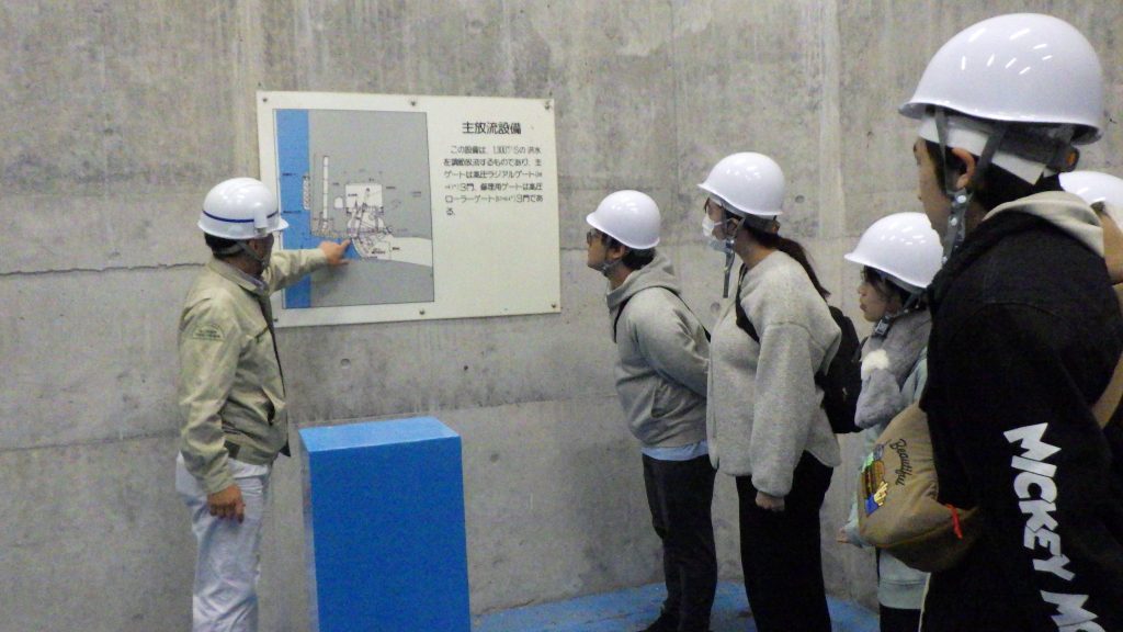 櫛田川上流の蓮(はちす)ダムは南勢・志摩地域の治水、利水の役割を担っています。国土交通省の職員の方からダム管理など丁寧な説明をしていただきました。