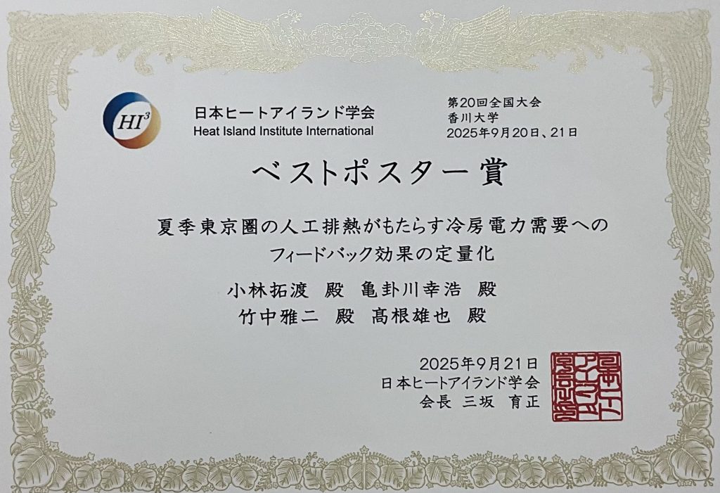 亀卦川がインドを拠点とする国際科学ネットワーク協会(International Society for Science Network: ISSN)の選考により、都市気候学分野のInternation …