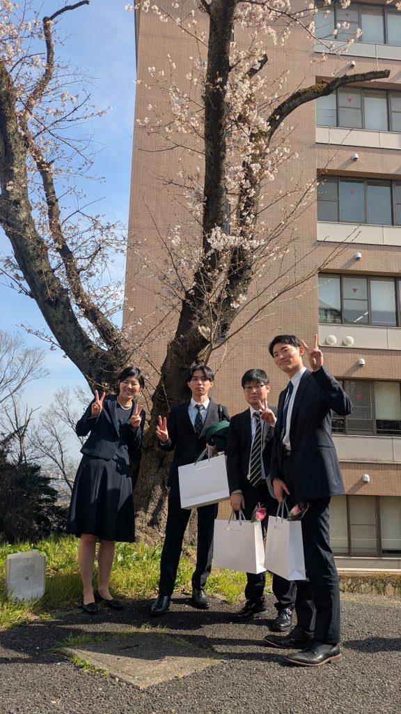 投稿日: 2026年3月24日祝卒業! 3名の卒研生が卒業しました。誠におめでとうございます。 ホタルの採取やトレイルカメラ・ハチトラップの設置、ゼミでのやりとり、どれも楽しかったですね。4月から、皆さんのご活躍を楽しみにしております。ありがとうございました。